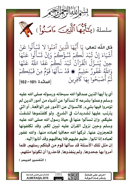 سلسلة يا أيها الذين آمنوا لا تسألوا عن أشياء إن تبد لكم تسؤكم ودعوا الي سبيل ربك The Invitation To The Way Of Thy Lord