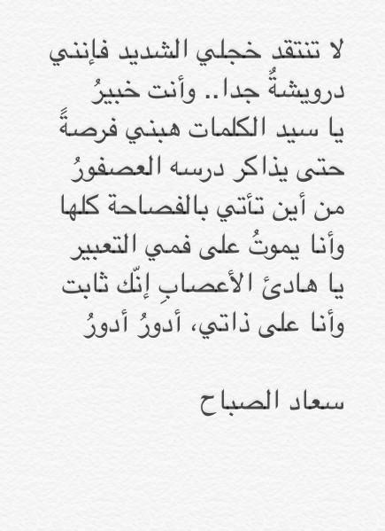 قصيدة لا تنتقد للشاعرة سعاد الصباح لاتنتقد خجلي الشـديد فإنني درويشة جــدا وأنت خبير يا سيد الكلمات هبني فرصة حتى يذاكر دروســه العصفور