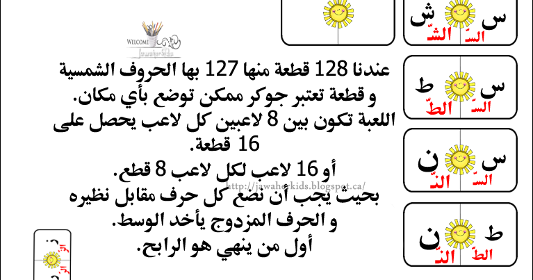 Jawaher Kids Nisaa لعبة الدومينو للحروف الشمسية Education Activities Blog Posts