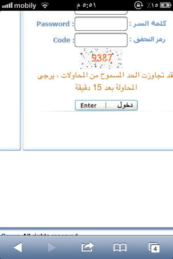 لقد تجاوزت الحد المسموح من المحاولات يرجى المحاولة بعد 15 دقيقة التعليم السعودي