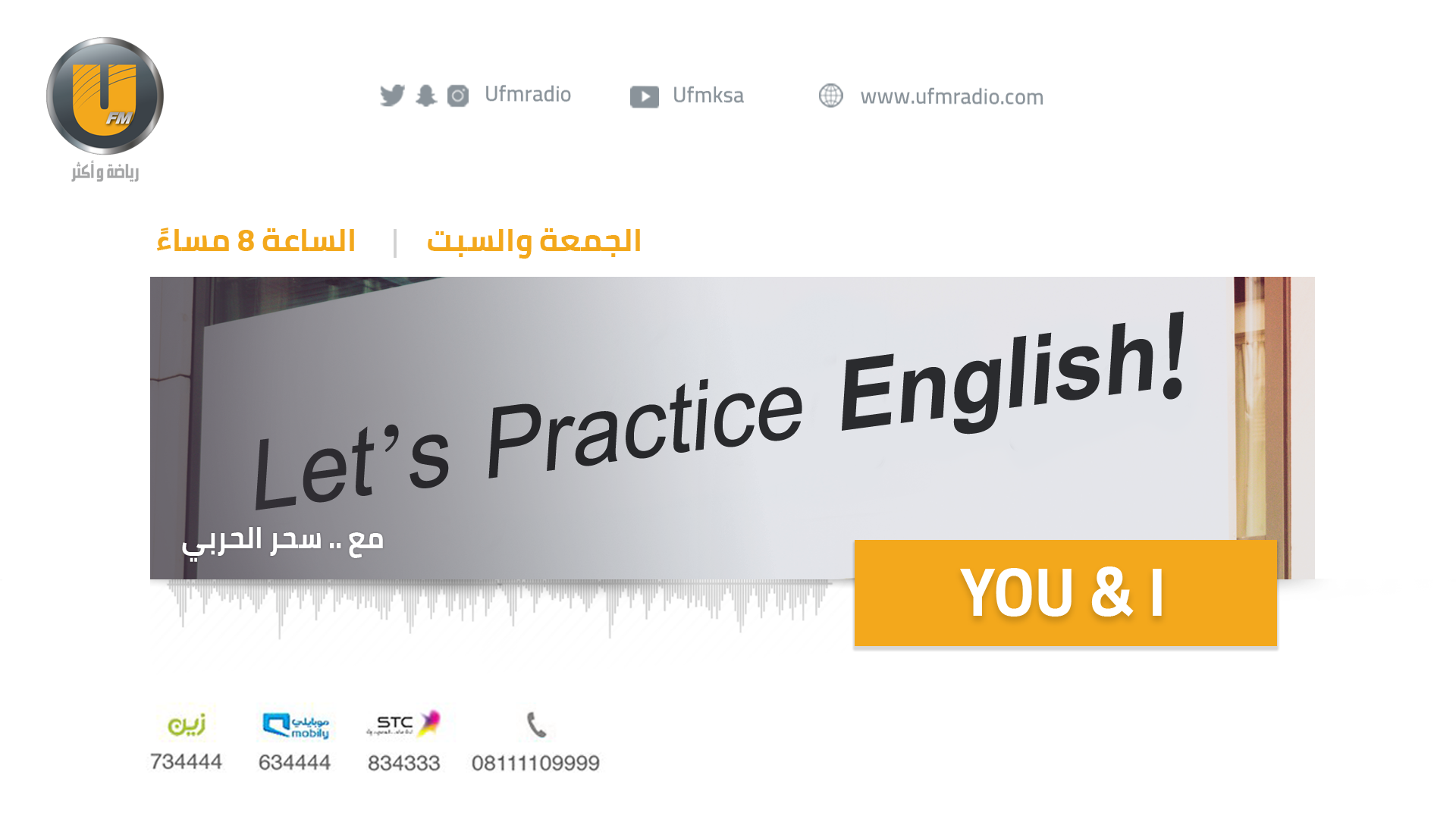 إذاعة يو اف ام A Twitter الآن حلقة جديدة من برنامج You And I Ufm برنامج تعليمي بقالب ترفيهي ي ذاع باللغة الإنجليزية على تقديمه سحر الحربي Saharufm1 تابعونا Https T Co Cinad4szjo