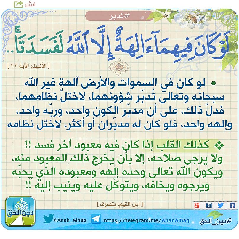 دين الحق בטוויטר لو كان فيهما آلهة إل ا الله لفسدتا تدبر دين الحق كذلك القلب إذا كان فيه معبود غير الله فسد ابن القيم