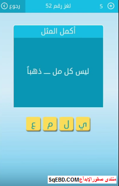 حل سؤال ليس كل ما ذهبا من اللغز رقم 52 من لعبة رشفة للمجموعة السادسة صقور الإبدآع