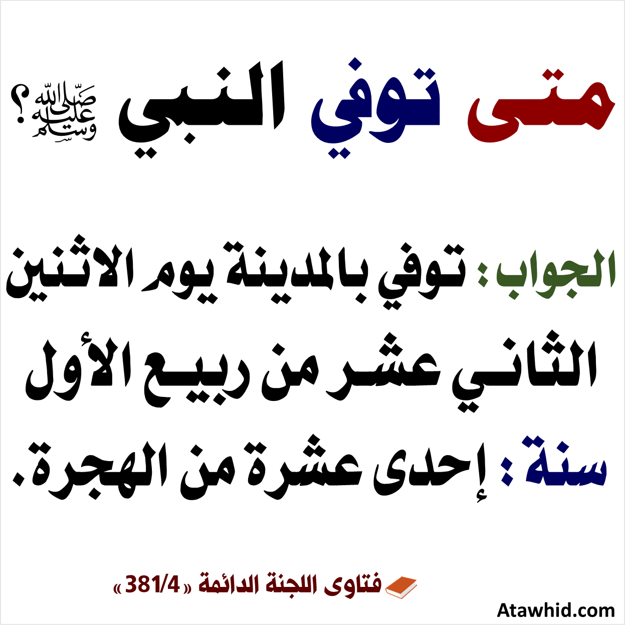 سؤال اليوم من متى توفي الرسول صلى Animation Arabic Facebook