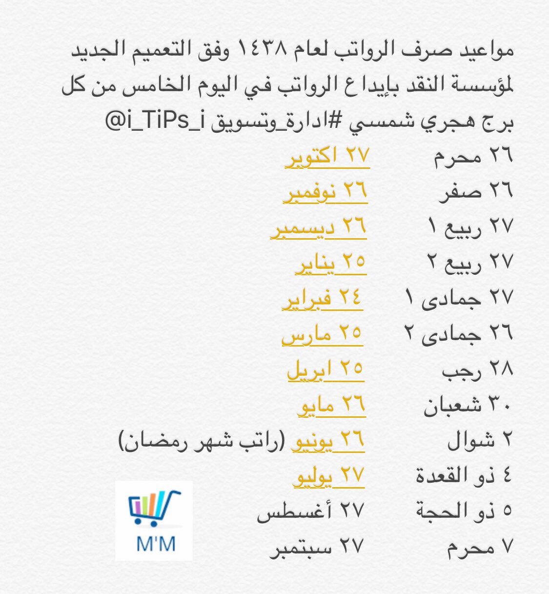 إدارة وتسويق M M Auf Twitter صرف الرواتب بالابراج مواعيد صرف الرواتب لعام ١٤٣٨ وفق التعميم الجديد لمؤسسة النقد بإيداع الرواتب في اليوم الخامس من كل برج هجري شمسي Https T Co Chupltzqam