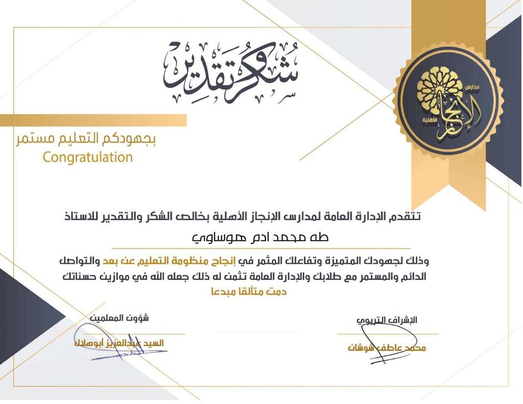 مدارس الإنجازالأهلية On Twitter قدمت الإدارة العامة لمدارس الانجاز الأهلية شهادات شكر وتقدير للمعلمين المتميزين في ابتدائية ومتوسطة الإنجاز بالهجرة على جهودهم المبذولة في تفعيل التعليم عن بعد Https T Co Qzyswp1xkb