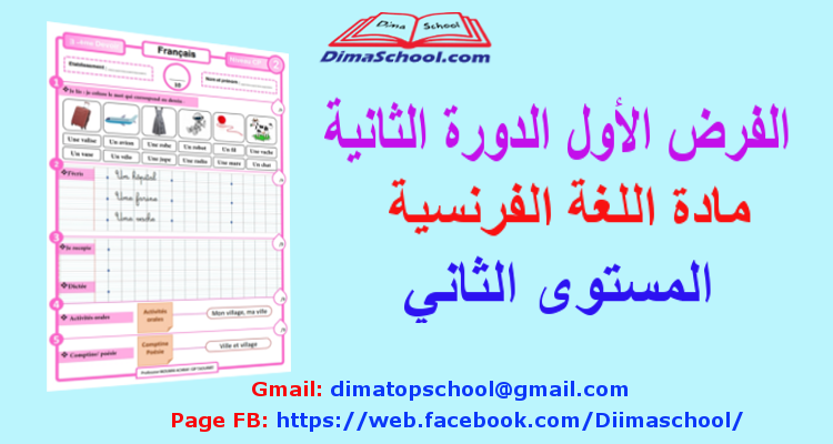 الفرض الأول الدورة الثانية مادة اللغة الفرنسية المستوى الثاني ابتدائي