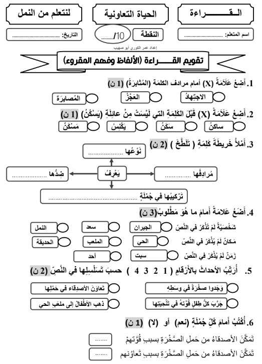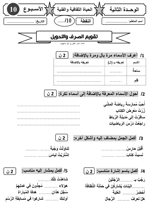 نموذج من المراقبة المستمرة اللغة العربية المرحلة الثالثة 3 المستوى الثالث