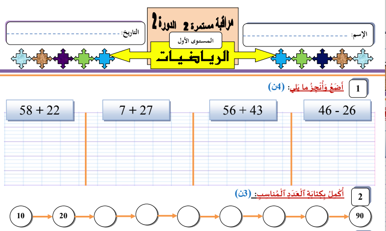 مراقبة مستمرة تمارين المستوى الثاني ابتدائي اللغة العربية