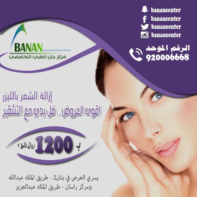 مركز بنان للتجميل على تويتر ليزر الشعر الآن فل بدي مع التشقير بـ 1200 ريال فقط للمواعيد 920006668 العرض ساري في بنان2 مركز راسان بنان راسان ليزر ازالة الشعر Https T Co 6mdjbrvcqp