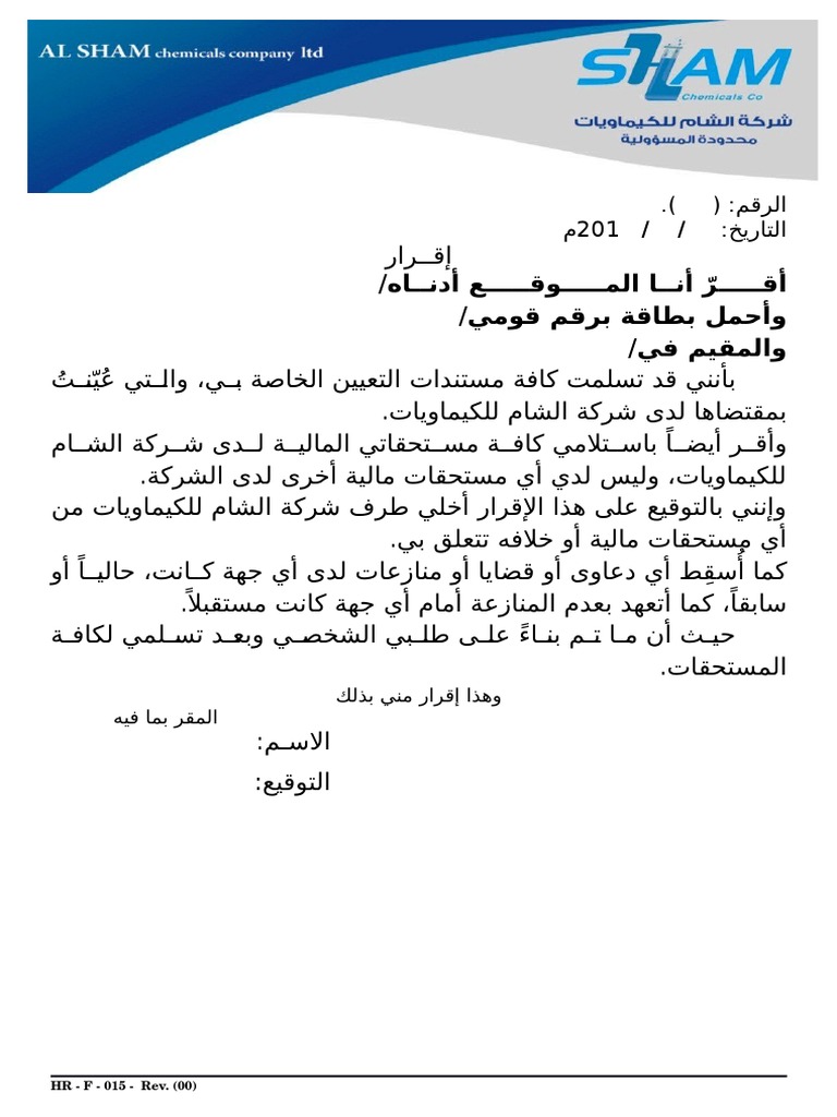 مستحقات مالية نموذج اقرار استلام مبلغ